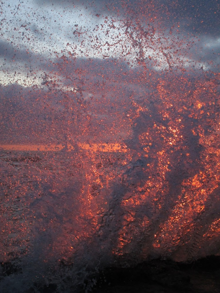 The water was choppy & waves were crashing all along the lakeshore. Combine the splashing waves with a flair of sunrise and you get some