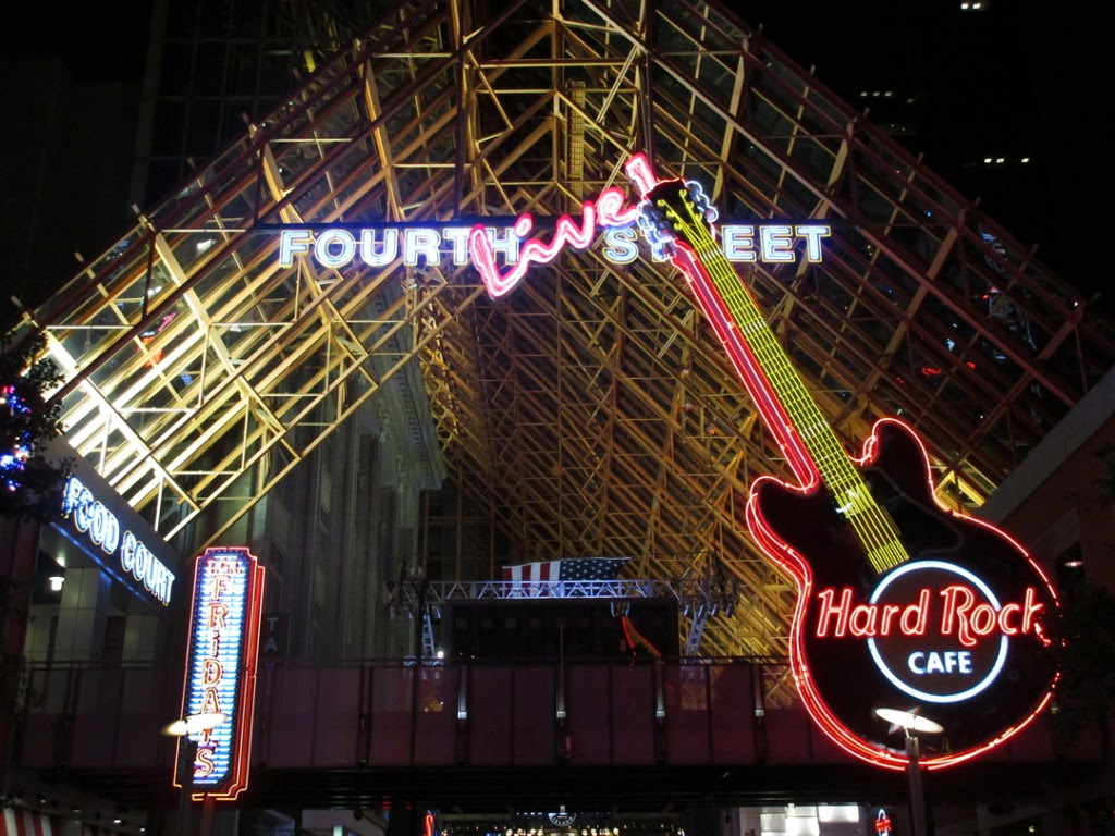 After we checked into our hotel and lugged all of our luggage and gear up to the room, we took a little walking tour to see the town and grab some food. It was fun to see the excitement at Fourth Street Live… Louisville’s center attraction. Lots of neon. Lots of music. Lots of food. LOTS OF EXCITEMENT!!!